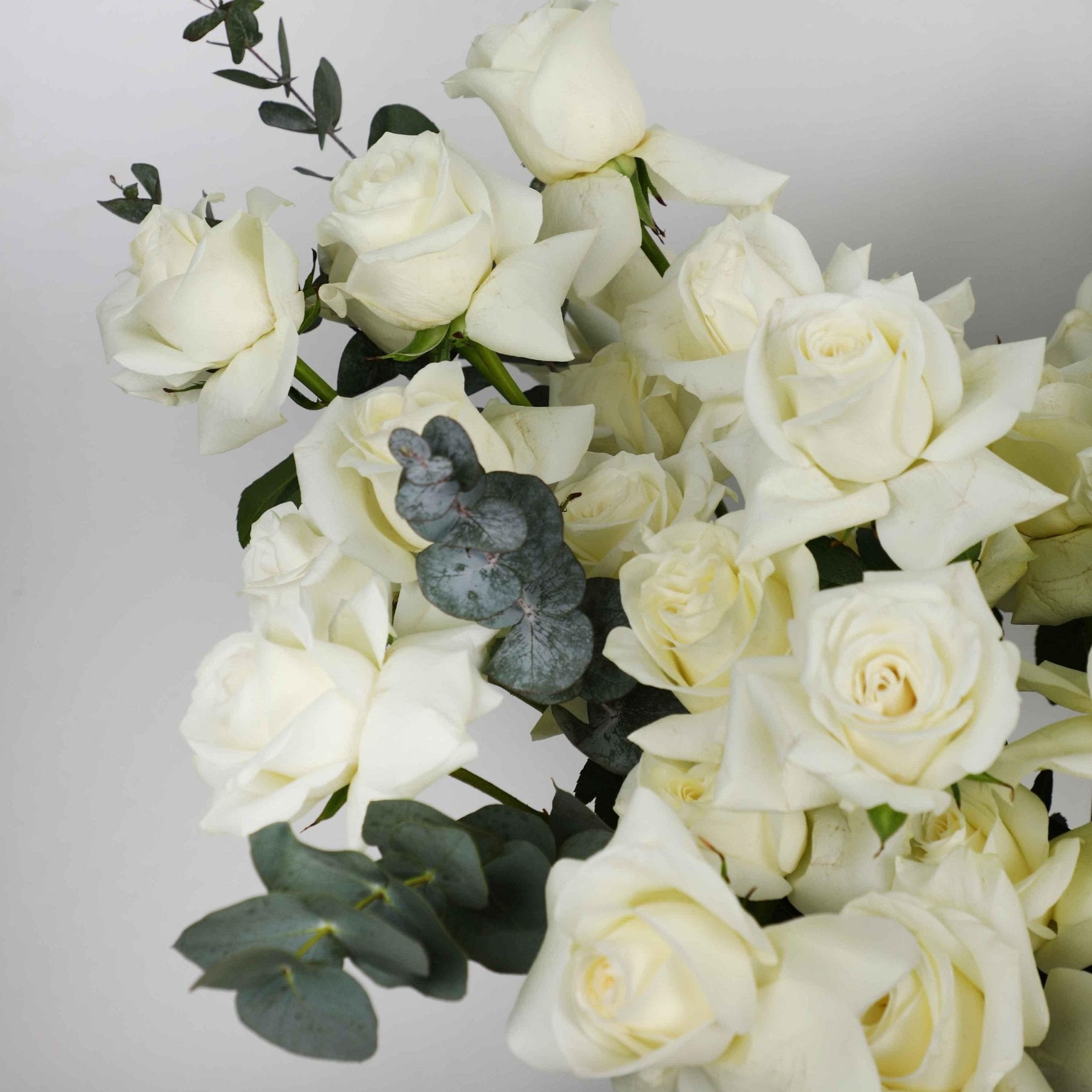 A luxurious box of white roses, crafted to embody elegance and purity with a lasting impression.