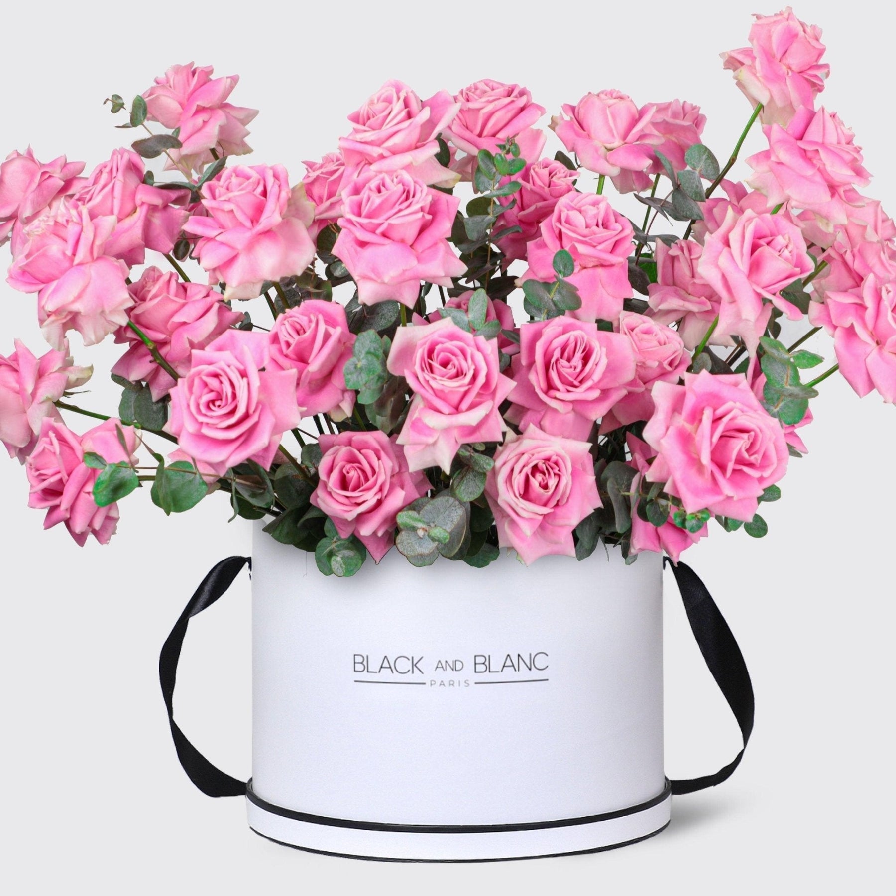 arranged in a pristine white round box. It’s the epitome of sophistication and grace, perfect for weddings, Mother’s Day, or simply to add a touch of refined beauty to any space.