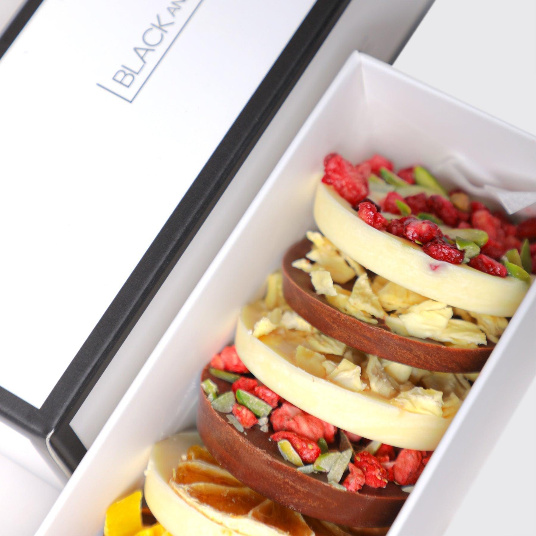 Indulge in the rich decadence of Chocolate Mendiant, a premium selection of 10 handcrafted Belgian chocolates, adorned with exquisite nuts and dried fruits, delivering an irresistible blend of flavors and elegance.